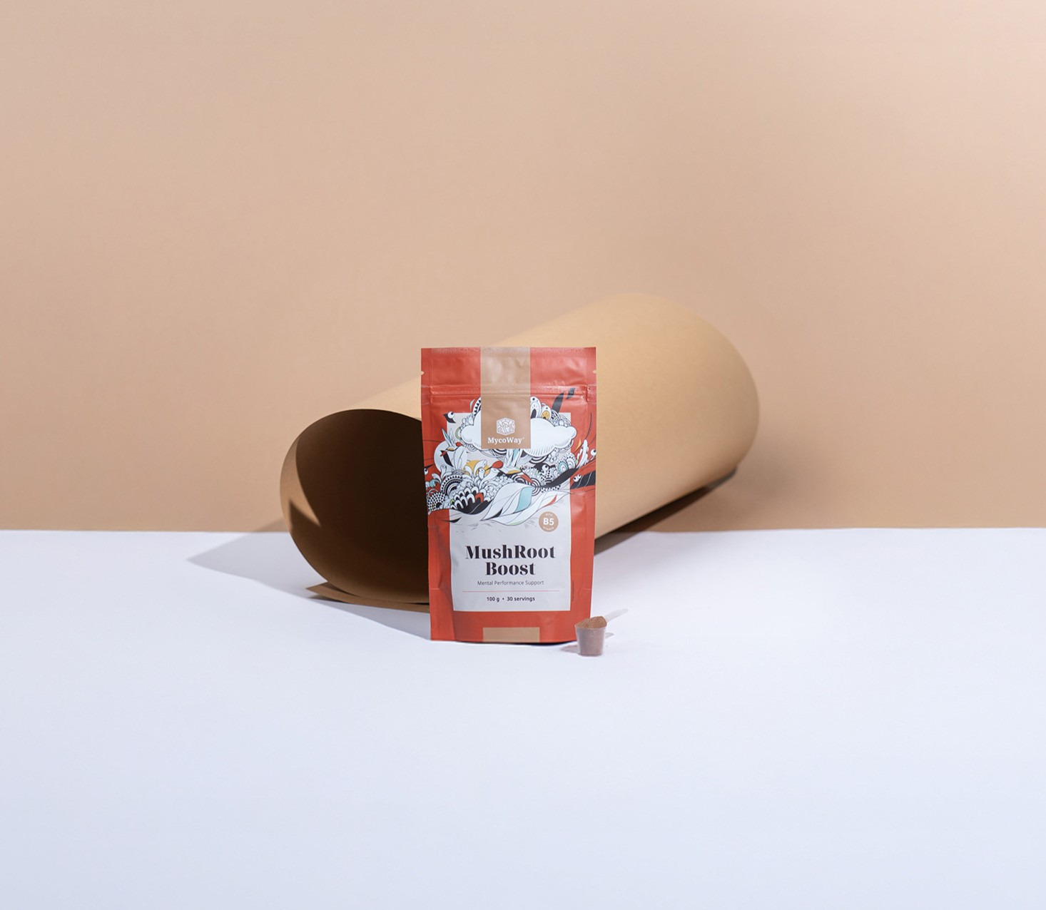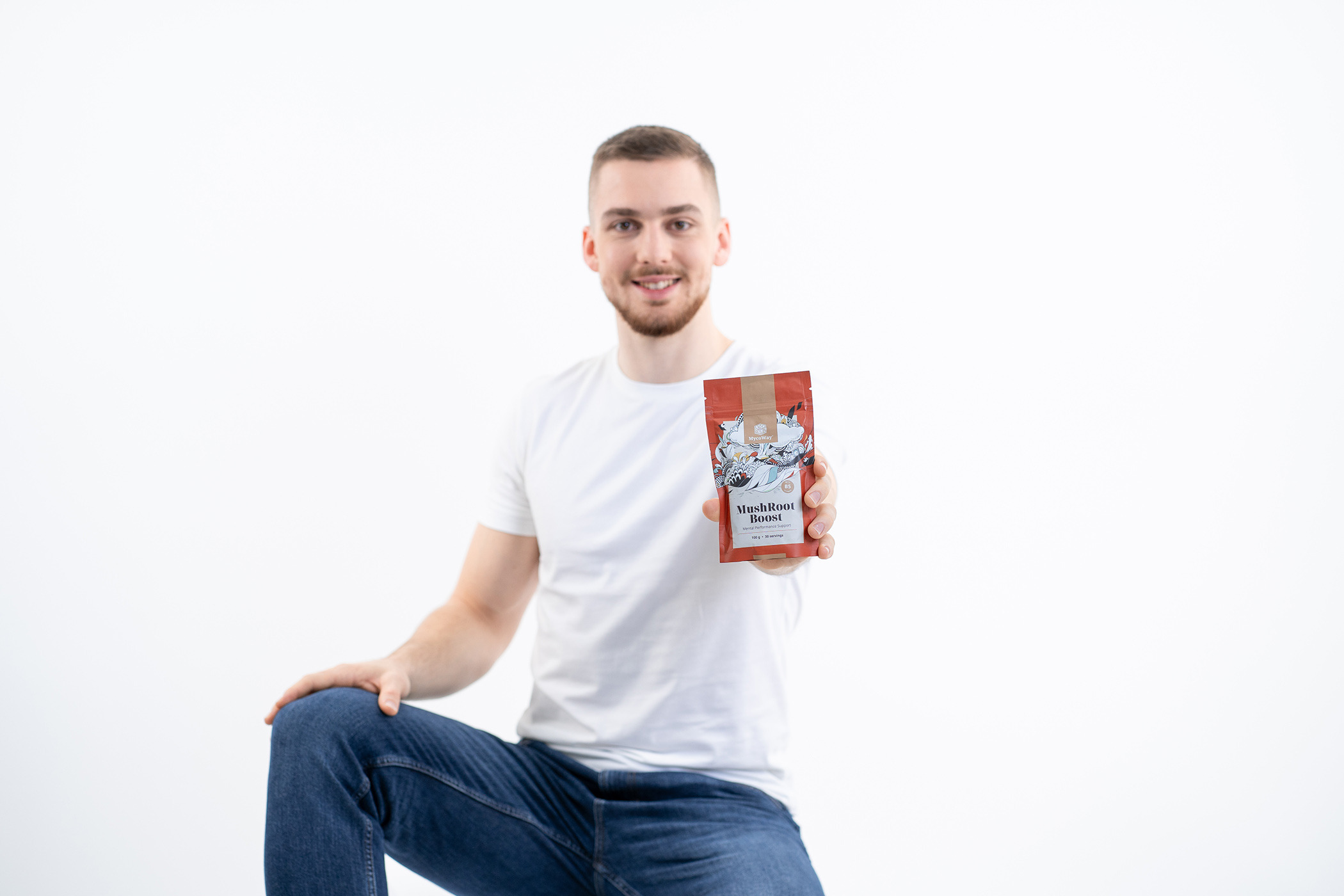 Συστατικά: κακάο σε σκόνη, maca (Lepidium meyenii, ρίζα) σε σκόνη, ξηρό εκχύλισμα yerba mate (Ilex paraguariensis, μαλτοδεξτρίνη), ξηρό εκχύλισμα cordyceps (Cordyceps Sinensis, μυκήλιο), ξηρό εκχύλισμα ρήζας Ροδιόλας (Rhodiola rosea, ρίζα; 1% σαλιδροσίδες), ξηρό εκχύλισμα χαίτης του λιονταριού (Hericium erinaceus, σπόρος), ξηρό εκχύλισμα reishi (Ganoderma lucidum, σπόρος), ξηρό εκχύλισμα τζίνσενγκ (Panax ginseng, ρίζα), ξηρό εκχύλισμα γαλάνγκας (Alpinia galanga, ρίζα), παντοθενικό οξύ (βιταμίνη Β5).