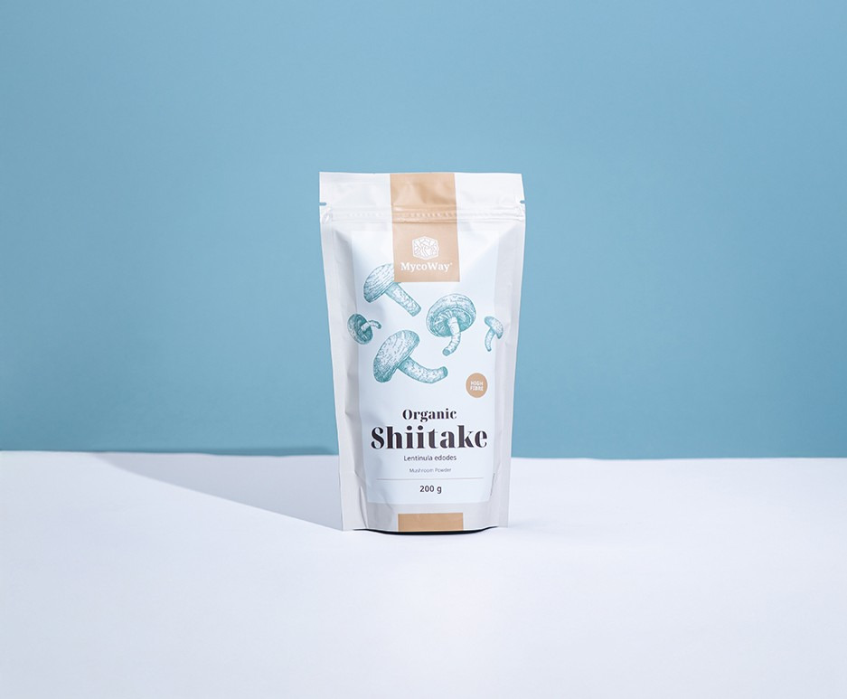 Το shiitake σε μορφή σκόνης αποτελεί έναν εξαιρετικά απλό και βολικό τρόπο με τον οποίο μπορούμε να προσφέρουμε στο σώμα μας όλα τα ευεργετικά αποτελέσματα αυτού του «θαυματουργού μανιταριού». Η ΒΙΟ shiitake σε μορφή σκόνης περιέχει μόνο τα σπόρια του μανιταριού, χωρίς μυκήλιο, και είναι εξαιρετικά πολυδύναμη - μπορούμε εύκολα να την προσθέσουμε σε διάφορα φαγητά ή να την ανακατέψουμε σε νερό, τσάι, καφέ, κακάο, γιαούρτι, χυμό ή smoothie.